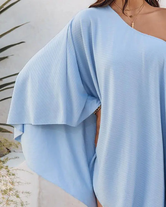 Chic Striped One-Shoulder Long Sleeve Romper with Irregular Hem
