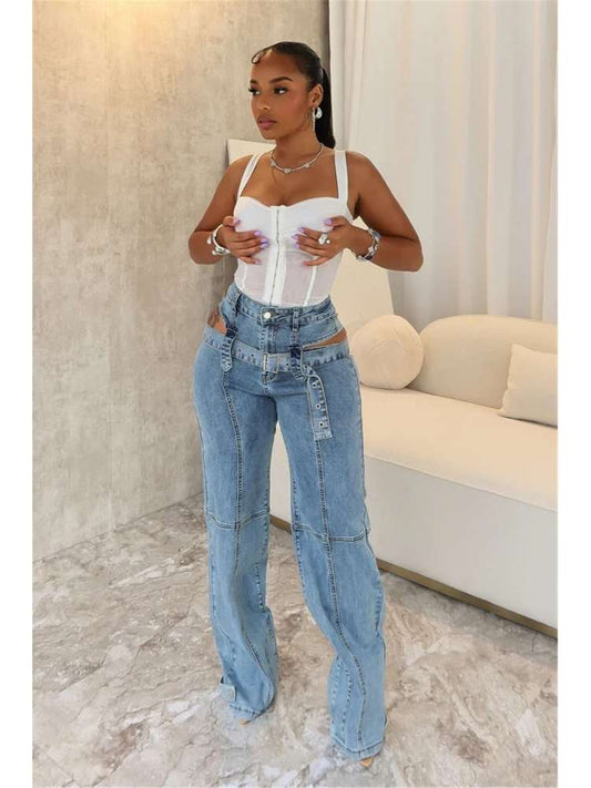 Trendy High-Waisted Distressed Denim Jeans for Effortless Style