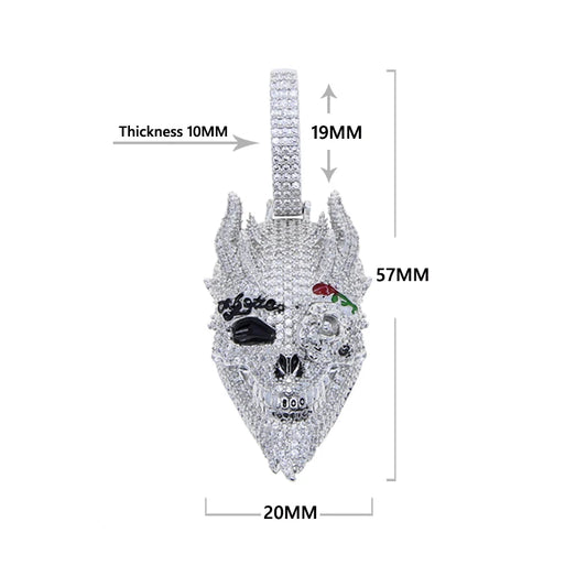 CZ Full Paved 5A Cubic Zircon Big 3D Shaped Skull Pendant Hip Hop Necklace Cool Rock Punk Men