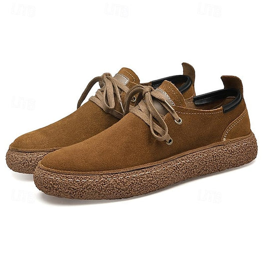 Stylish Men's Suede Sneakers: Comfortable, Slip-Resistant Lace-Up Design in Dark Grey/Brown