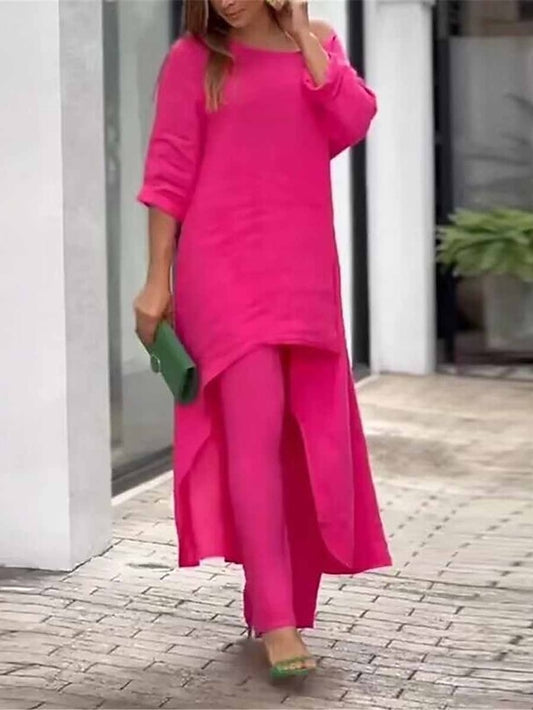 Chic & Comfortable Women's Loungewear Set - Casual Crew Neck Long Sleeve & Pants