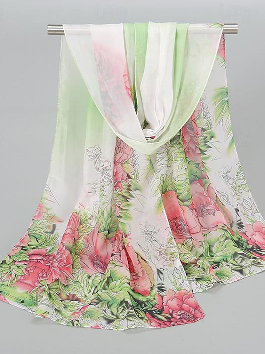 Chic Floral Rectangle Scarf for Women - Grey & Yellow Street Style