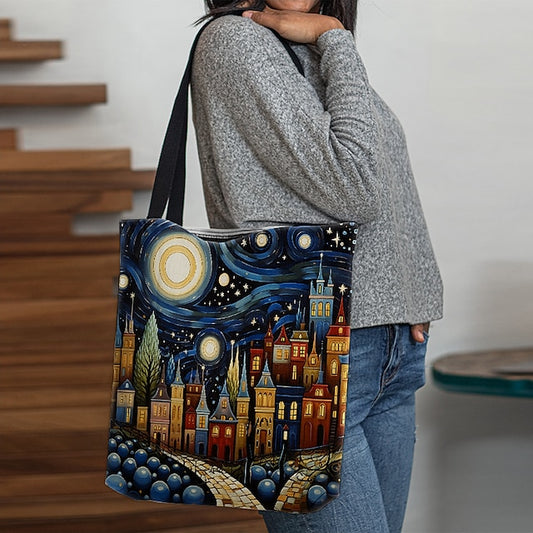 Chic & Versatile Women's Canvas Tote Bag - Lightweight, Foldable with Stylish Geometric Print