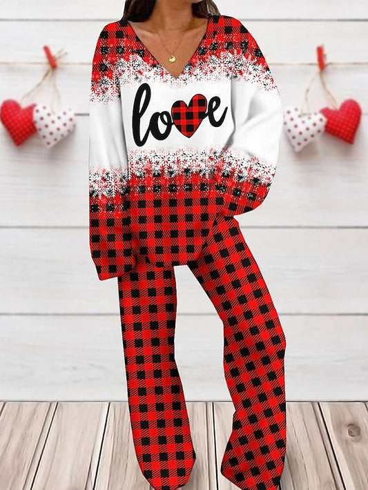 Cozy Heart Print Women's Loungewear Set - Stylish 2-Piece