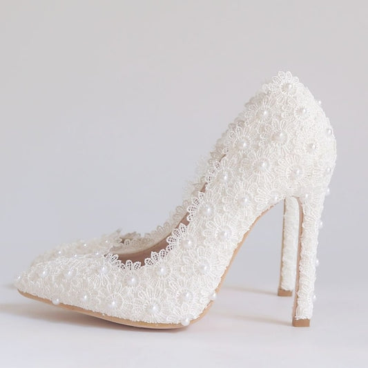 Elegant Vintage Stiletto Heels for Weddings - Lace and Pearl Accented Pointed Toe