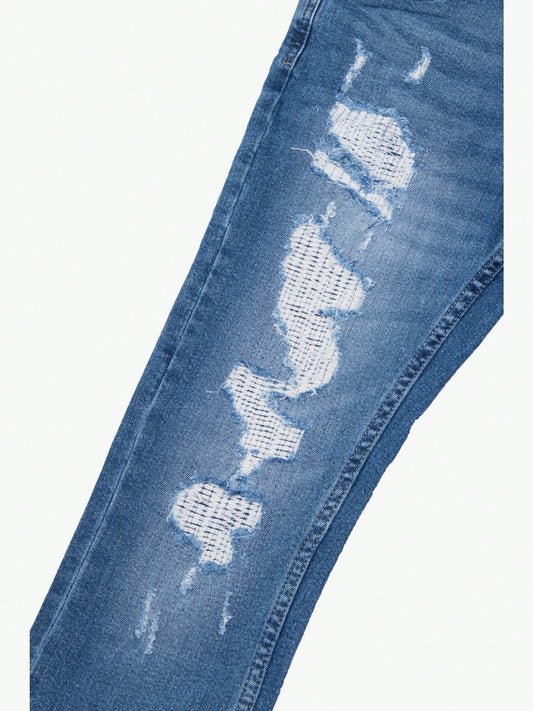 Trendy Boy's RawX Ripped & Repaired Jeans - Edgy Style for Tween Fashion