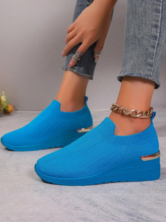 Chic & Casual: Women's Wedge Platform Knit Sneakers - Lightweight, Breathable & Stylish