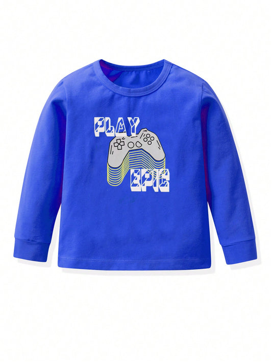 Cool Gamer Vibes: 4-Piece Tween Boy Long Sleeve T-Shirt Set for Autumn & Winter