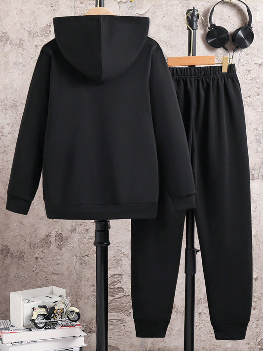 Tween Boy Gamepad Print Hoodie & Drawstring Pants Set - Perfect for Spring and Autumn!