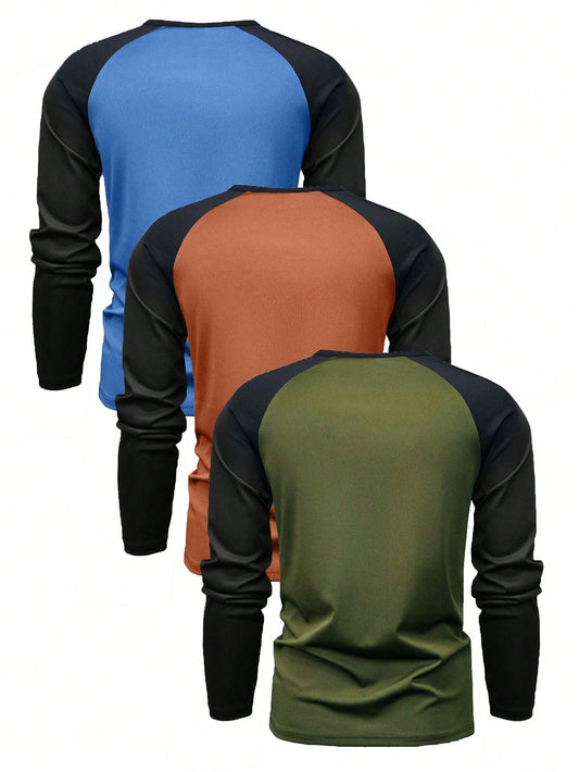 Stylish 3-Piece Colorblock T-Shirt Set for Tween Boys - Perfect for Autumn & Winter!