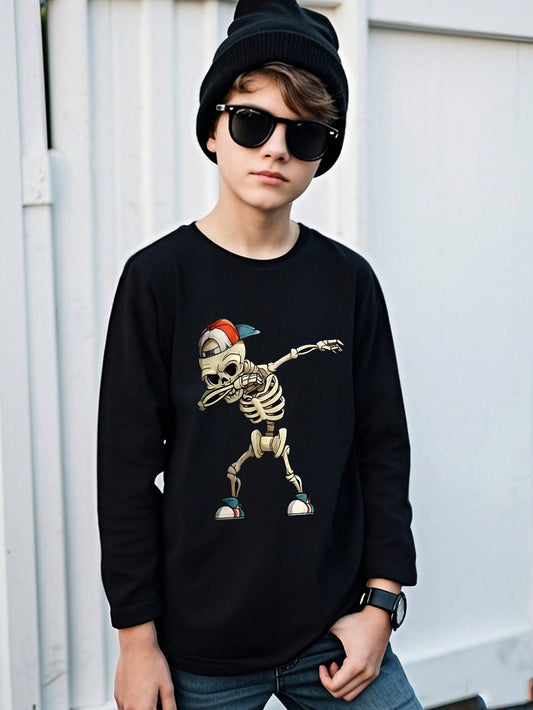 Skeleton Print Crew Neck T-Shirt for Tween Boys