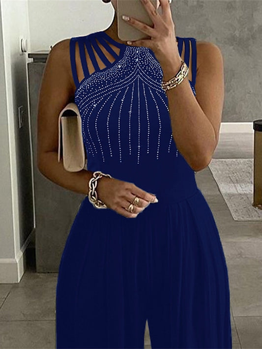 Elegant Women's High-Waisted Cut-Out Jumpsuit Available in Black, Red, and Blue