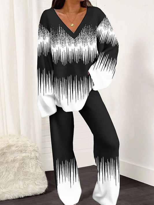 Chic & Cozy Women's Geometric Flower Pajama Set - Soft Breathable Long Sleeve & Pant Outfit for Spring