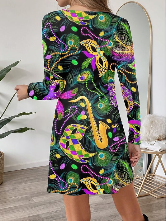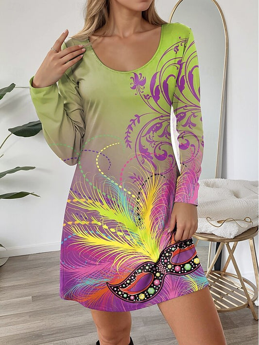 Women's Casual Dress T Shirt Dress Stylish Casual Mardi Gras Graphic Mini Dress