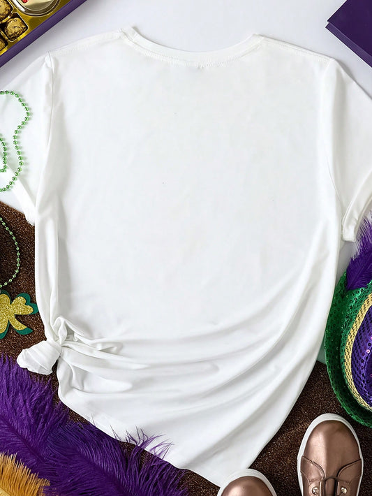 Plus Size Mardi Gras Casual White T-Shirt - Relaxed Fit for Festive Comfort