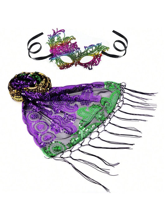 Sparkling Mardi Gras Shawl & Mask Set – Stylish Sequin Poncho