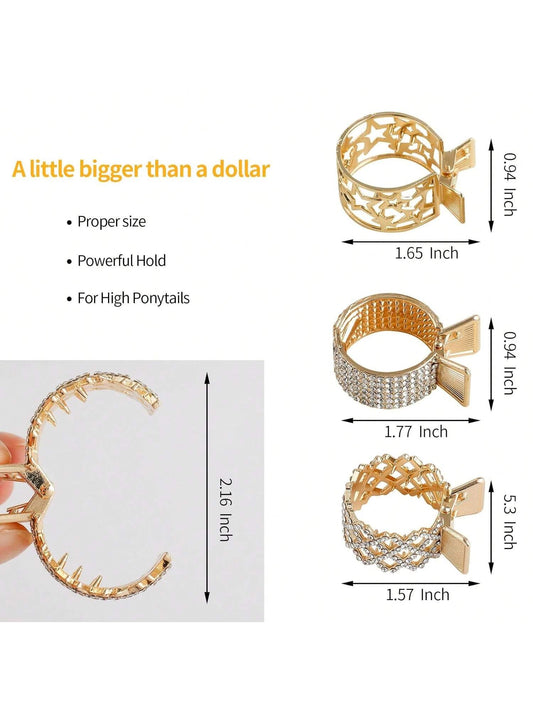 Chic Elegance: 3-Piece Gold Round Hair Clips with Rhinestones for Effortless Style