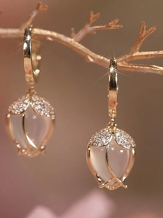 Charming Tulip-Shaped Imitation Opal Earrings - Perfect for Girls' Fashion