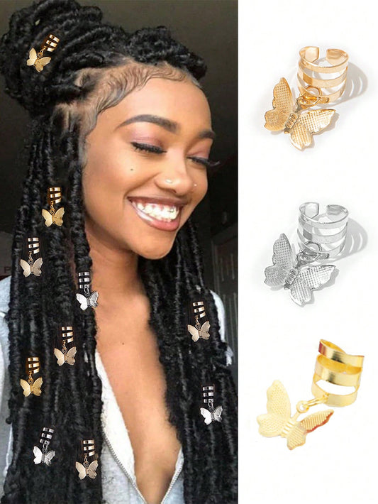 Charming Butterfly Dreadlock Hair Rings - 20pcs Adjustable Alloy Cuffs with Tassels