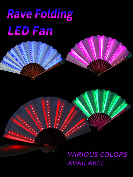 Glowing Rave Folding Fan: LED Light-Up Handheld Accessory