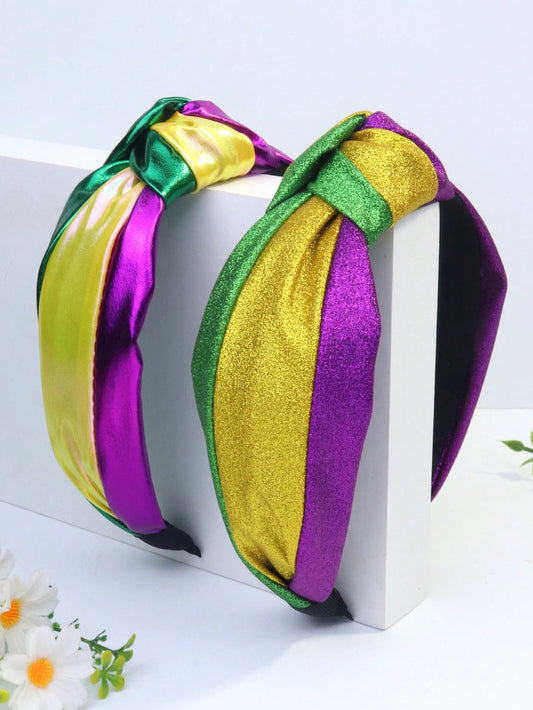 Vibrant Carnival Hairband - Mardi Gras Headband in Festive Green, Yellow & Purple