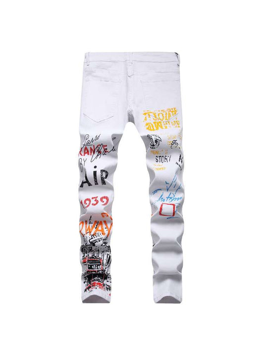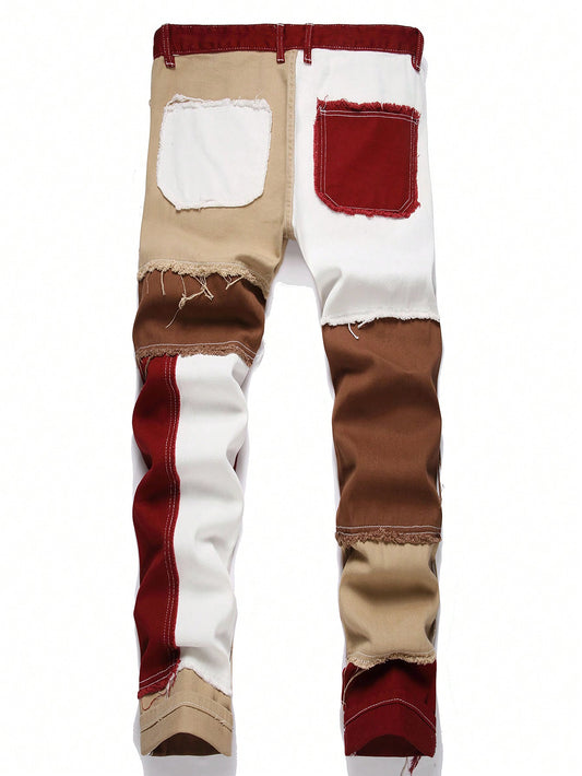 Trendy Frayed Straight Leg Jeans with Contrast Color Detailing for Men
