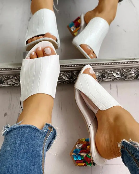 Chic Croc-Embossed Rhinestone Chunky Heels – Elevate Your Style!