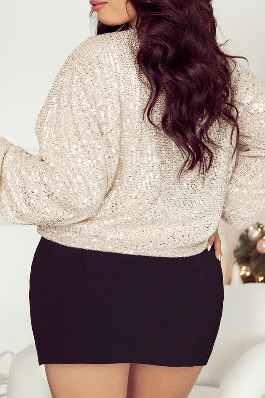 Apricot Sequin Zip up Round Neck Long Sleeve Jacket