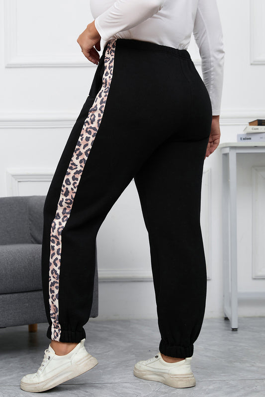 Black Plus Size Contrast Leopard Side Panel Joggers