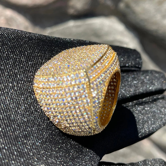 Bubble Letter Iced Out Ring for Men Real Gold Plated Prong Setting Copper CZ Stones