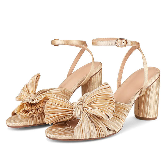 Bowknot EHigh Heel Sandal Ankle Strap Open Toe Round Heel Buckle Strap