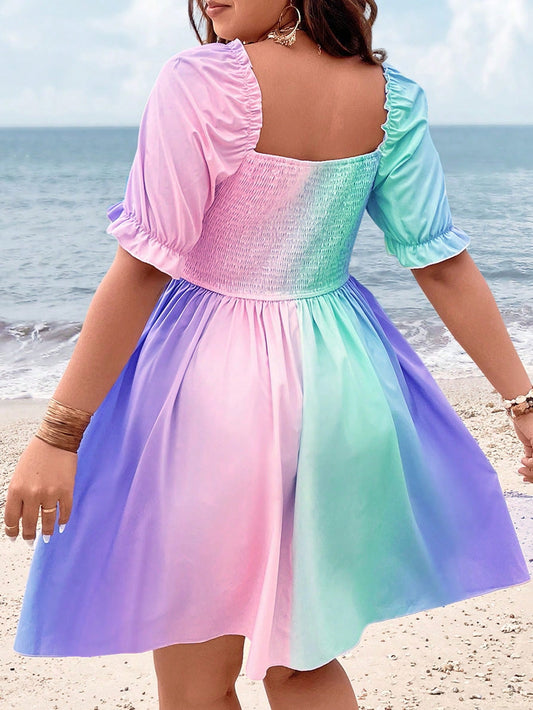 Pastel Dreams: Holidaya Plus Ombre Shirred Puff Sleeve Dress
