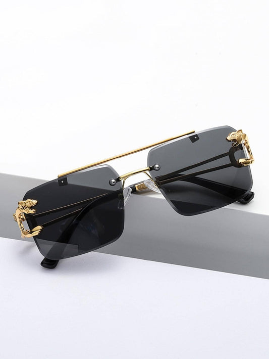 Trendy Rimless Double Bridge Sunglasses for Men - Bold Big Frame Shades