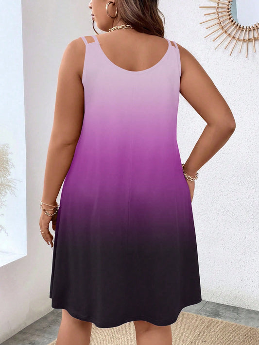 Chic Gradient Color Strappy Plus Size Sundress for Effortless Summer Style