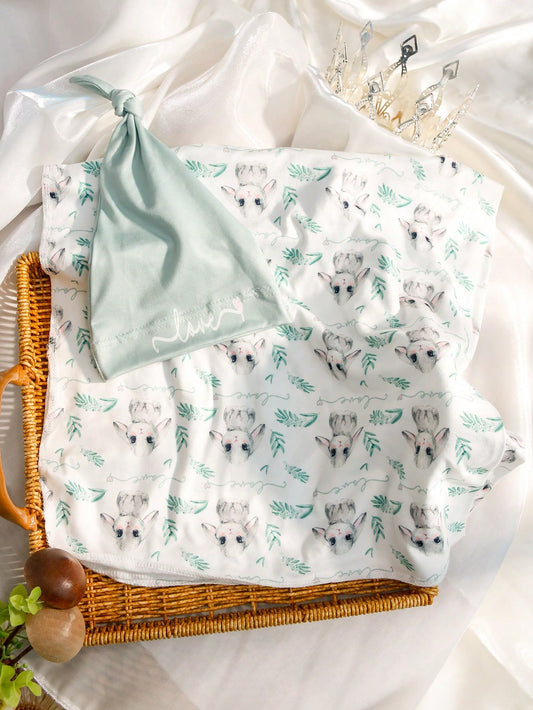 Adorable Rabbit Print Swaddle Blanket and Hat Set for Newborn Baby Boys – Perfect for Photography Props