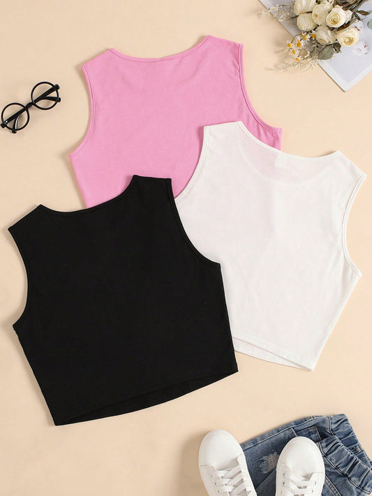 Chic Summer Vibes: 3-Piece Heart & Leopard Pattern Tank Set for Teen Girls