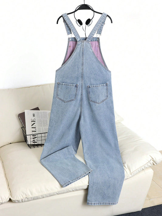 Chic & Casual: Pink Colorblock Distressed Denim Overalls for Teen Girls