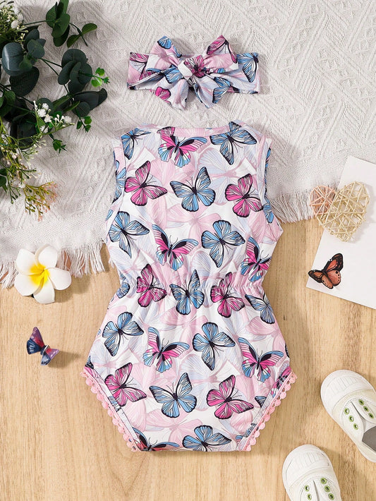 Charming Summer Set: Baby Girls' Sleeveless Romper and Headband Duo