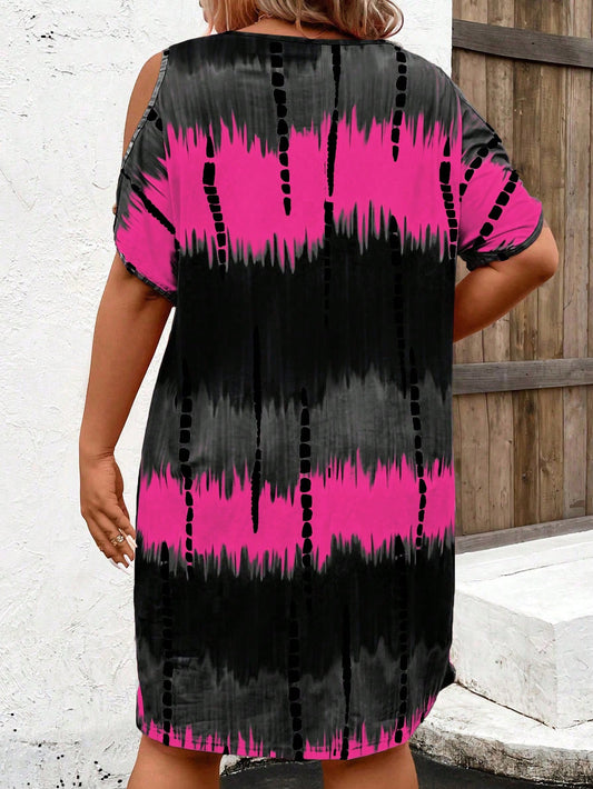Chic & Comfortable: Plus Size Color Block Open Shoulder Dress