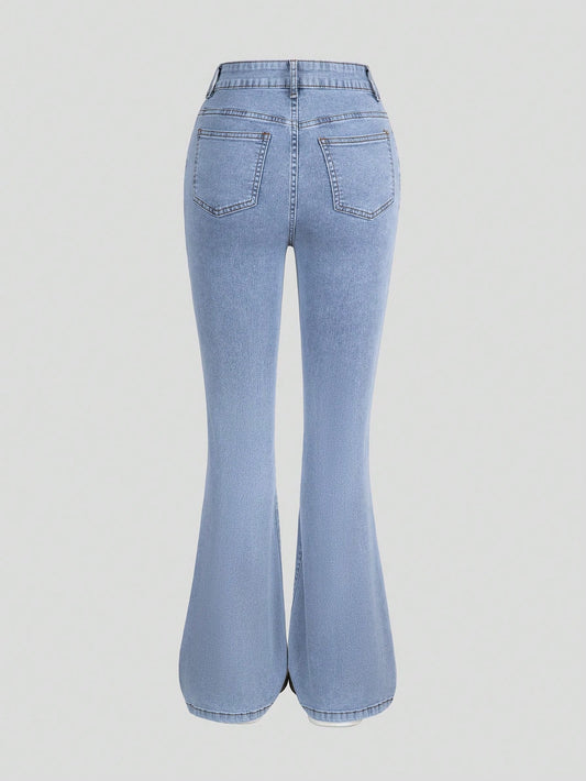 Blue Denim Flared Pants with Bow Pocket Design for Trendy Teen Girls