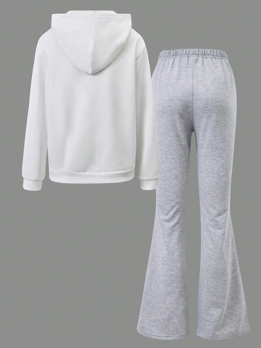Chic Floral Embroidered Hoodie & Flared Pants Set for Trendy Teen Girls