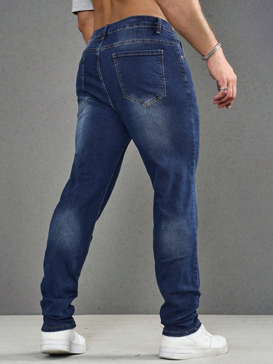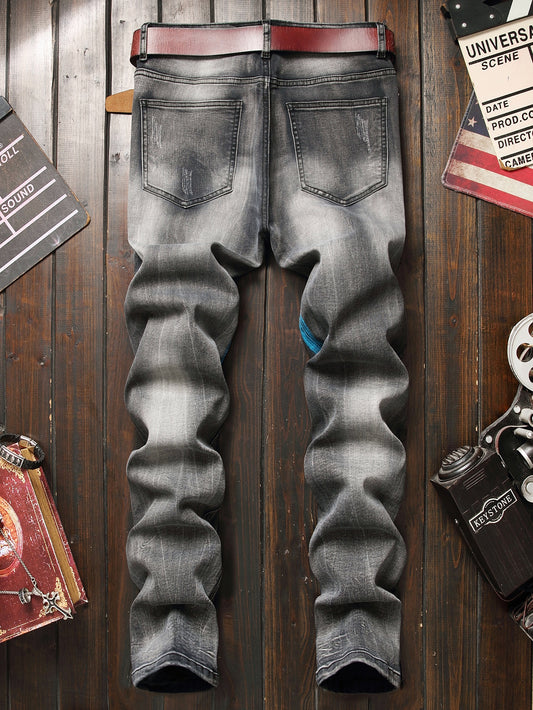 Stylish European-American Men’s Slim Fit Straight Leg Denim Jeans