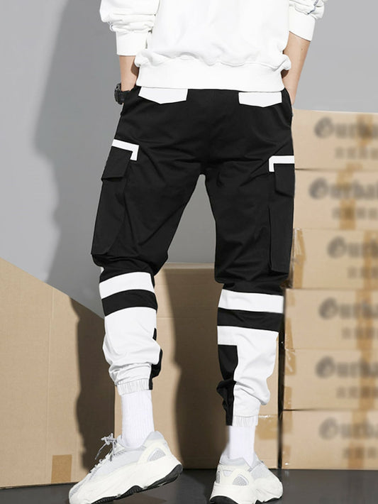 Stylish Two-Tone Cargo Pants for Men - Streetwear Essential with Long Drawstring Design