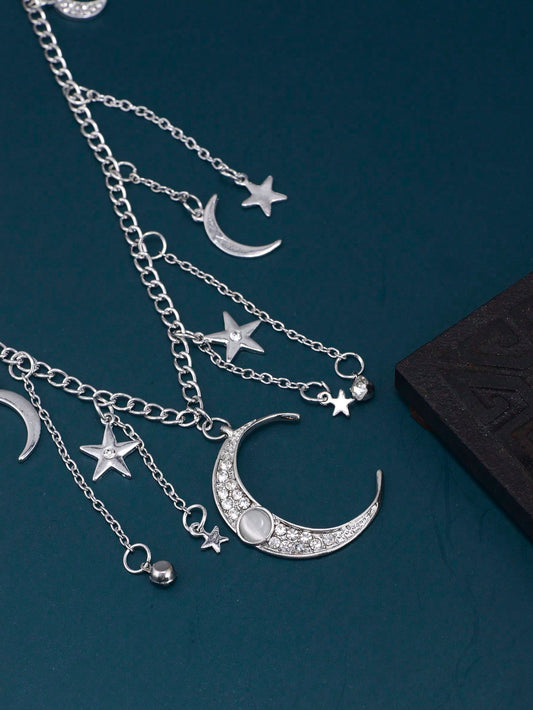 Celestial Elegance: Vintage Gold Chain Necklace with Diamond Moon and Star Pendant