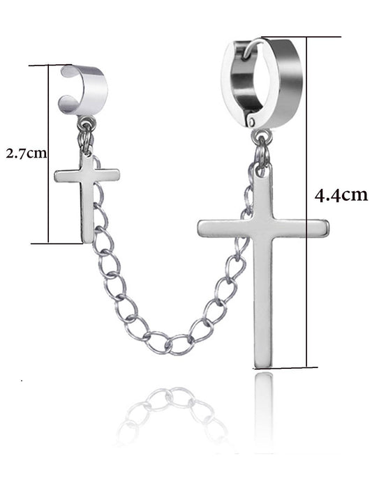 Stylish Cross-Chain Charm Ear Cuff in Stainless Steel