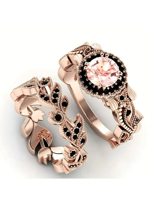 Elegant Floral Design Cubic Zirconia Ring Set - Perfect for Parties and Daily Wear