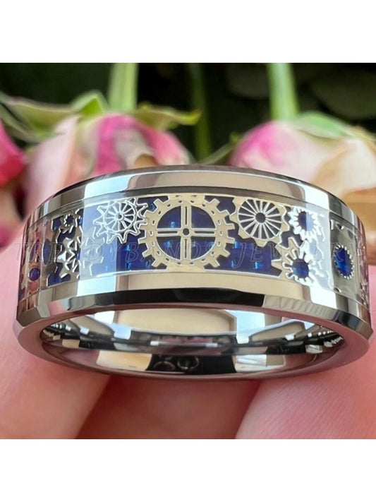 Men's Punk Blue Gear Wheel Stainless Steel Wedding Ring – Sizes 7 to 13