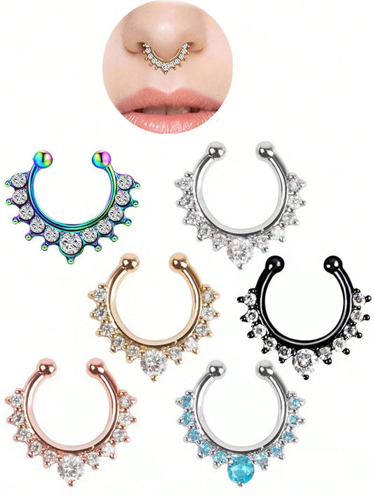 Sparkling Alloy Rhinestone Non-Piercing Nose Clip – Elegant Accessory for Effortless Style!