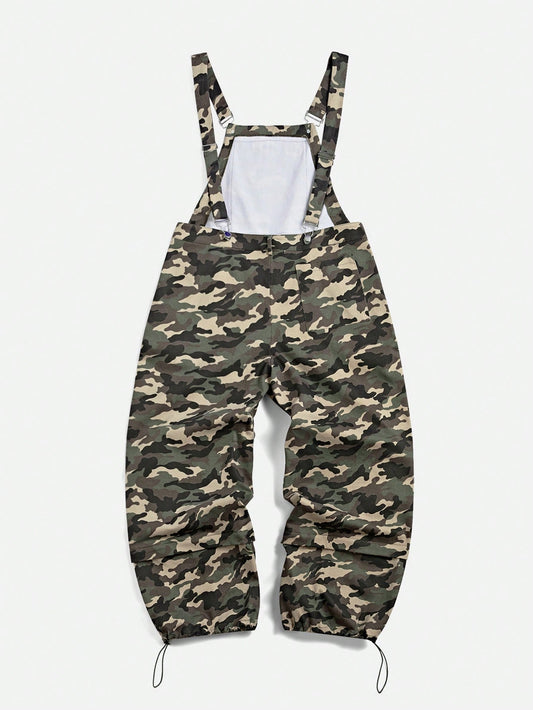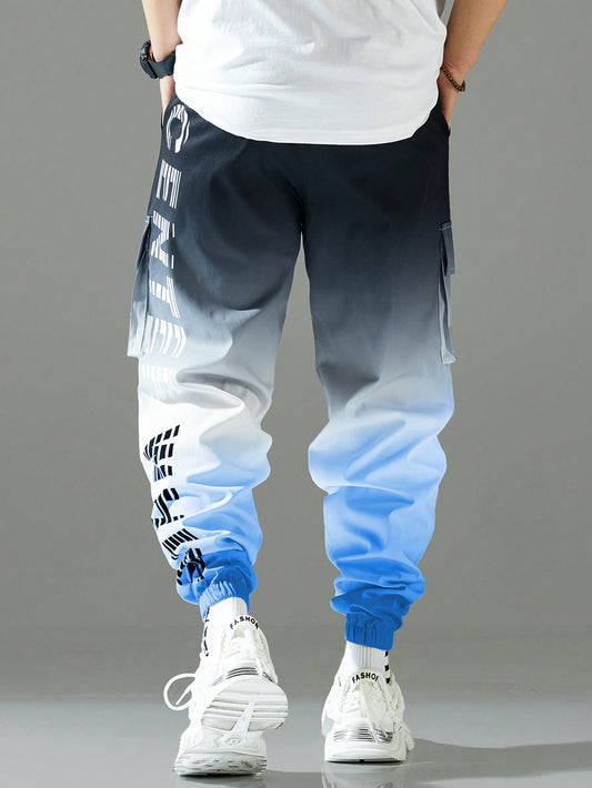 Ombre Multi-Pocket Casual Pants with Front Tie & Letter Print for Men