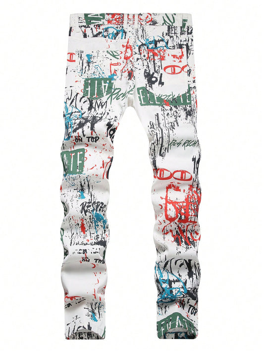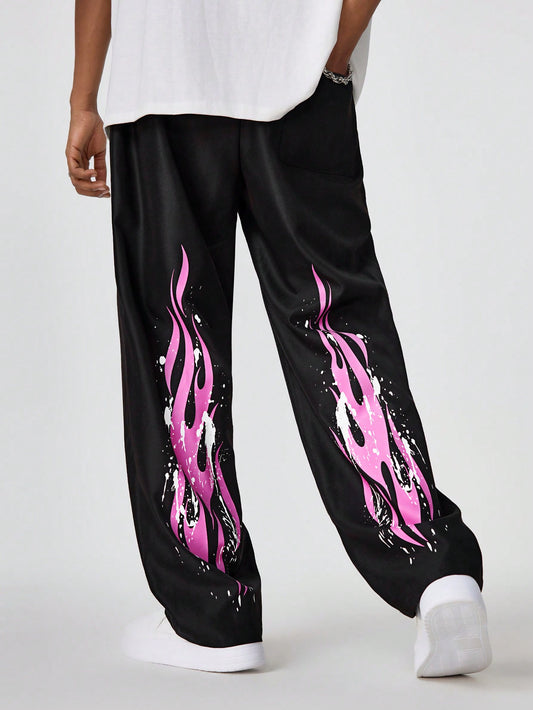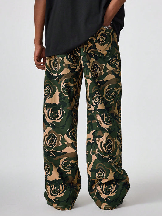 Men's Digital Print Loose Straight Woven Trousers – Trendy Comfort for Everyday Style